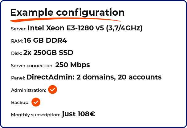 Dedicated server sold in the server rooms often do not have administration and require hiring an administrator. It’s different with us – our dedicated servers are a complete hosting solution, so they include administrator support.